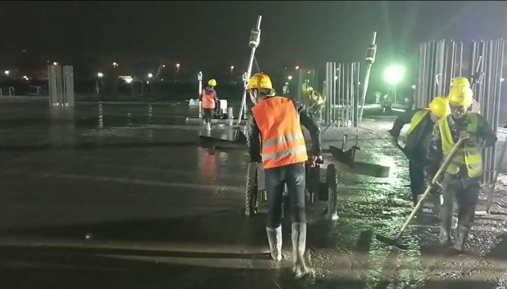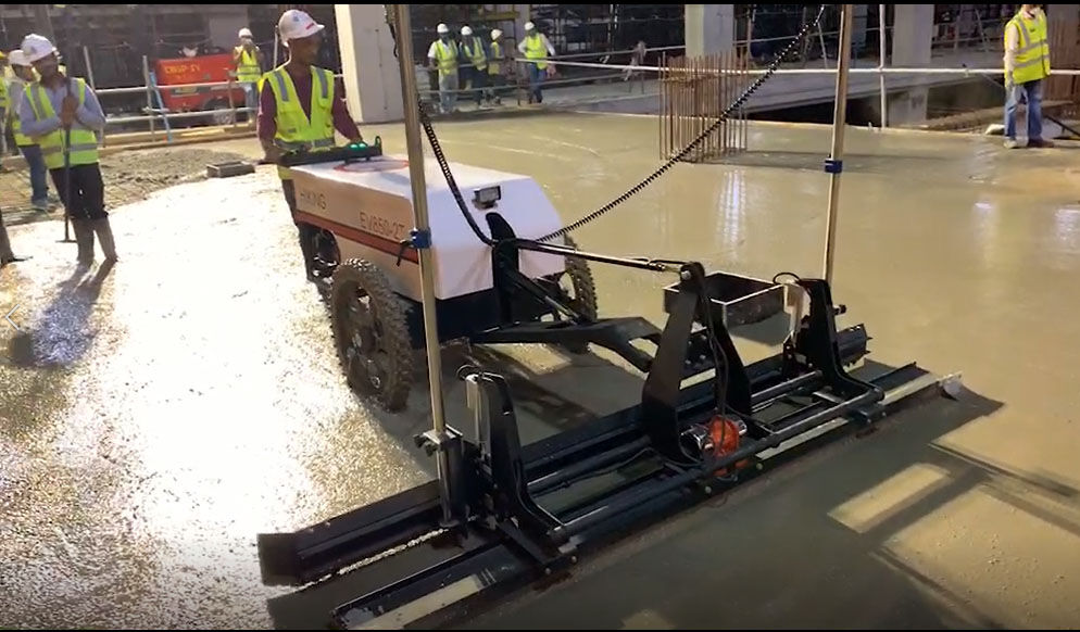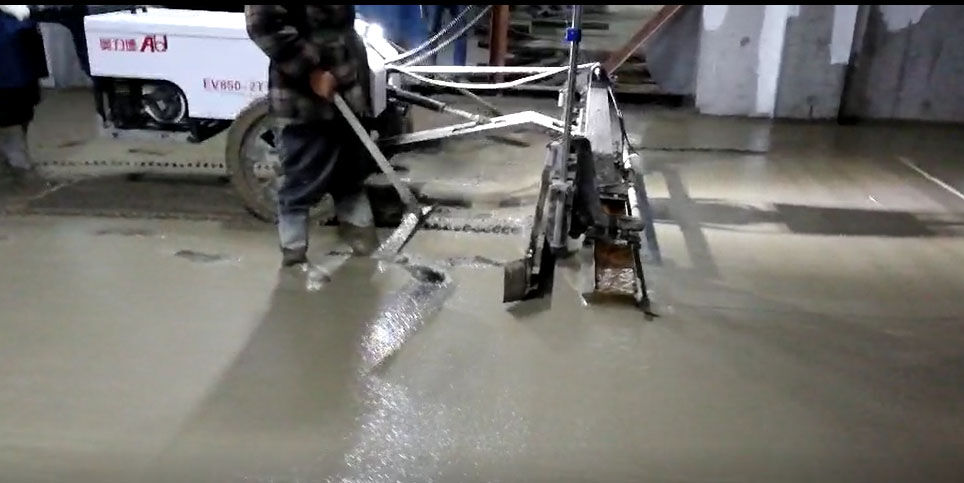 混凝土激光攤鋪機(jī)是用刮板將高出的混凝土帶走并初步刮平,達(dá)到設(shè)計要求的標(biāo)高。液壓驅(qū)動振動馬達(dá)產(chǎn)生震動,頻率為4000次/分鐘,帶動整個振動板一起對混凝土產(chǎn)生振搗。激光攤鋪機(jī)找平不需要拉控制線,也不需要支側(cè)模板來控制地面標(biāo)高,而由攤鋪機(jī)上的激光測控系統(tǒng)實時控制,只要激光發(fā)射器不受干擾,無論攤鋪機(jī)移動到哪里,都能確保鋪筑后的地面整體上的標(biāo)高不受影響。
