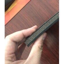耐熱輸送帶分為普通耐熱帶和強(qiáng)力耐熱輸送帶,普通耐熱帶強(qiáng)力層為滌棉帆布(CC56),強(qiáng)力耐熱帶強(qiáng)力層為EP(具體又分為EP100型、EP150型,EP200型、EP250,EP300型、EP350型,EP400型、EP450型、EP500型等)。 用途:主要用于冶金、建筑等行業(yè),輸送燒結(jié)礦、焦炭、水泥熟料等高溫物料,物料溫度不超過800℃,帶面溫度不超過220℃的條件下使用。 特性:采用三元乙丙橡膠為覆蓋層,骨架材料采用國內(nèi)專用的耐高溫帆布,獨(dú)特的配方設(shè)計(jì),解決了因乙丙橡膠飽和度高,粘合性差,層間附著力低的關(guān)健問題。具有帶體輕,壽命長(約2-4倍),耐熱性能好的特點(diǎn)。 物理性能: 強(qiáng)度 老話后與老化前之差(IRHD) 23 老化后的最大值(IRHD) 88 拉伸 強(qiáng)度 性能變化率降低,% 40 老化后的最低值,MPa 5 扯斷 伸長度 性能變化率,% 60 老化后的最低值,% 150 耐高溫鋼網(wǎng)輸送帶是用鋼絲縱橫編制而成,鋼網(wǎng)表面鍍鋅或鍍銅,在鋼網(wǎng)上下表面覆蓋橡膠層,運(yùn)輸高溫物料過程中,整體表面不脫層,使用性能比分層式耐熱輸送帶更可靠。