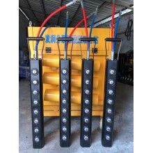 根據(jù)施工的要求我們研發(fā)出了兩款設備進行不同工程的巖石破碎,大型劈裂機FR-5600型重1.3噸,長度為3米。使用時需要用鉤機吊起來進行巖石。配合履帶式鉆機開采效率可達幾百方甚至更多看現(xiàn)場操作。人工手持式巖石機分為3個型號,分別為150 250、350因其操作性高,可在狹小空間操作,分別適用于礦洞掘進、豎井開挖、混凝土破碎、露天開采等工程。