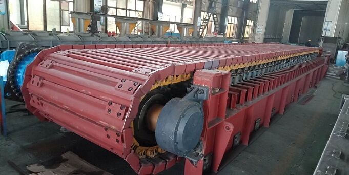 由于板喂機(jī)是通過鏈輪、鏈條、鏈板、傳動等一系列全鋼結(jié)構(gòu)的剛性機(jī)架將物料拖出庫底的。所有的料倉壓力由板式給料機(jī)承擔(dān),避免的由于料倉壓力過大把皮帶秤壓壞現(xiàn)象。