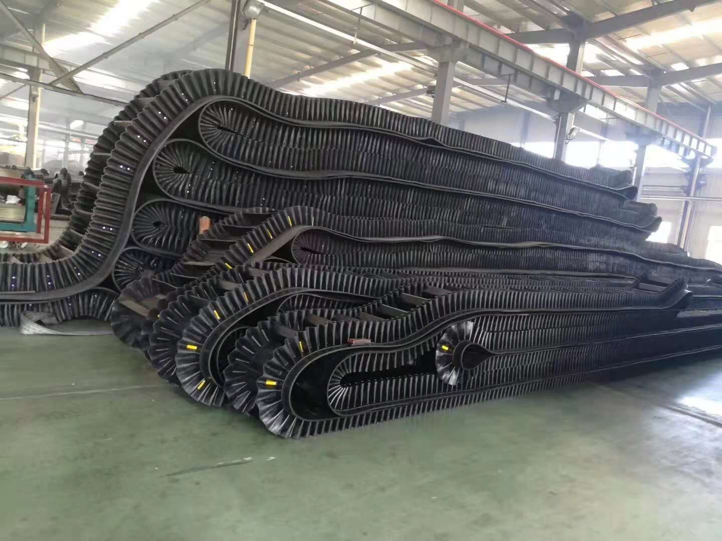2 大傾角輸送帶直接不需要打孔,也不需要借助外力,而是借助本身的結(jié)構(gòu)就可以完成物料的由低處向高處的物料輸送。大傾角輸送帶的基帶和普通輸送帶的基帶是一樣的,也是平皮帶,這個平皮帶的生產(chǎn),經(jīng)過煉膠,硫化等等一系列的工序生產(chǎn)而成?;鶐У纳a(chǎn)對于大傾角擋邊帶來說也是一個很重要的步驟。在這一步的生產(chǎn)里,我們需要根據(jù)客戶的實(shí)際需求,選擇相對應(yīng)的拉力布層,現(xiàn)在無論是普通棉帆布布層,尼龍布層,聚酯布層,鋼絲繩芯布層,都可以由您進(jìn)行選擇?,F(xiàn)在基本來說,普棉布層的拉力為56,尼龍,聚酯布層的拉力為100-400,鋼絲繩芯大傾角擋邊膠帶的拉力為st600-st5600。不同的拉力可以為您運(yùn)輸不同的物料。