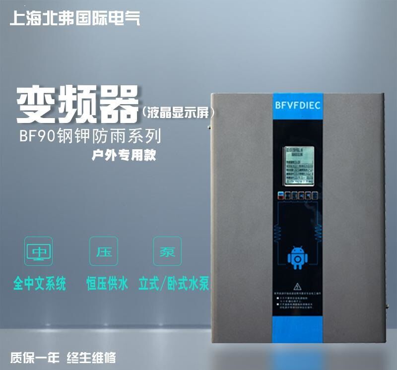 BF90恒壓供水背負(fù)式全中文鋼鉀防雨型變頻器為我公司的全中文操作系統(tǒng)鋼甲防雨系列產(chǎn)品,簡易供水參數(shù)設(shè)置,目標(biāo)壓力、睡眠壓力、睡眠頻率、睡眠延時(shí)、喚醒壓力、喚醒延時(shí)等供水所需功能,可直接液晶顯示。