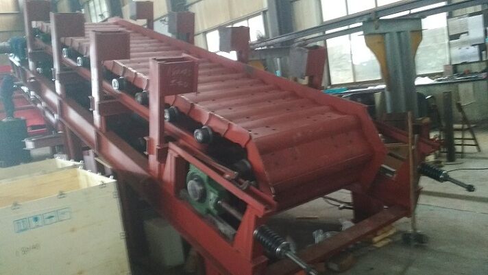 2、輸送槽板: 整個(gè)槽板圍成一個(gè)相對(duì)封閉的箱體,以保證上部來(lái)料能夠有效進(jìn)入板鏈上部,便于物料自開口處由刮板輸送至下一級(jí)輸送系統(tǒng),同時(shí)保證不使物料散落。
