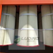 濾筒除塵器的氣流分布很重要,須考慮如何避免設(shè)備進(jìn)口處由于風(fēng)速較高造成對濾料的高磨損區(qū)域。氣流分布板用于濾筒式除塵器有獨特要求,氣流分布須十分穩(wěn)定和均勻。才有利于氣流的上升和粉塵的下降,氣流分布板開孔率35。根據(jù)計算,阻力系數(shù)<2,由此可見在氣流速度<0.8m/s的情況下,多孔氣流分布板可以滿足濾筒式除塵器的要求。