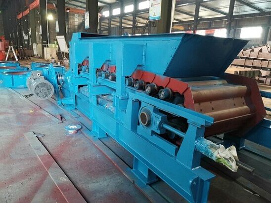 導(dǎo)料板的長(zhǎng)度通常由進(jìn)料方式確定,如果板式給料機(jī)是放在料倉下面,那么在料倉下面就不需要設(shè)計(jì)導(dǎo)料板,料倉往外到驅(qū)動(dòng)軸這一段就要設(shè)計(jì)導(dǎo)料板。如果是通過裝載機(jī)往板式給料機(jī)供料,則板式給料機(jī)全段都要設(shè)計(jì)導(dǎo)料板。