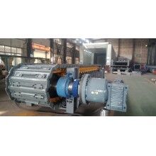 其主要作用是為設(shè)備提供動(dòng)力及將電機(jī)轉(zhuǎn)速減速至設(shè)備輸送物料需要的轉(zhuǎn)速。傳動(dòng)部件主要由電機(jī)、齒輪減速箱等配套件組成。電機(jī)和減速箱固定在同一座架上,其間由齒輪聯(lián)軸器聯(lián)接,構(gòu)成一個(gè)獨(dú)立的部件。