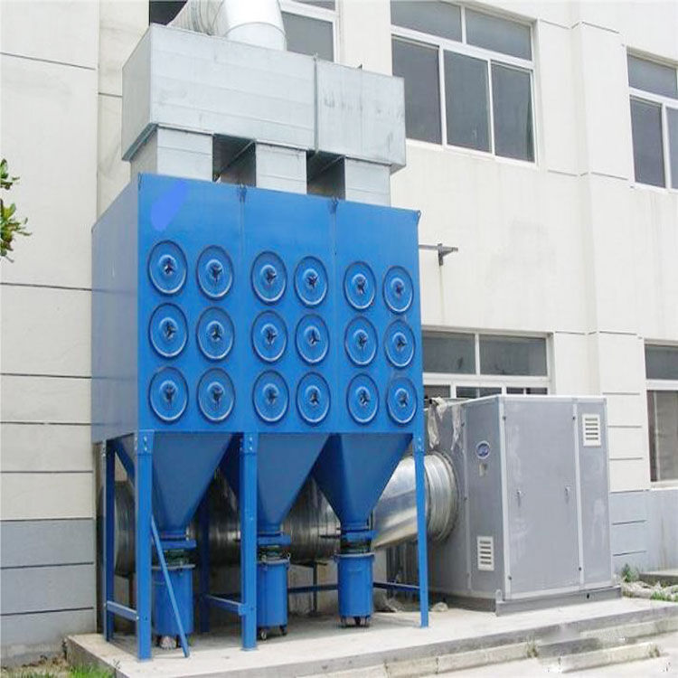 在正常運(yùn)行時,如:重力、慣性力、碰撞、靜電吸附,篩濾作用等。含塵空氣由頂部入口進(jìn)入濾筒式除塵器,較大的粉塵顆粒因截面積增大,風(fēng)速下降而提高直接沉降,較小的煙塵粉塵顆粒通過濾筒。粉塵被捕集在過濾筒外邊,清潔空氣則經(jīng)由濾筒中心進(jìn)入清潔空氣室,再經(jīng)出口由引風(fēng)機(jī)排出。隨著過濾不斷進(jìn)行,濾筒表面的煙塵粉塵越積越多,阻力不斷升高,及至濾筒清灰時,固態(tài)控制將操縱電磁閥以打開一個空氣隔膜閥,于是高壓空氣便直接沖入所選濾筒中心,把捕集在濾件表面上的粉塵吹掃一清,使濾筒再生。粉塵則隨主氣流所趨,并在重力的作用下向下落入塵斗中。周而復(fù)始,連續(xù)過濾,使設(shè)備連續(xù)進(jìn)行得到保障。