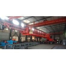 礦山塊狀物料由入料裝置落入皮帶輸送機上。皮帶輸送機由頭部滾筒、尾部滾筒、張緊裝置、上下托輥、改向滾筒等部件組成,其中央設(shè)置有桁架,托輥架與桁架剛性連接,托輥與托輥架采用柔性連接,增強了皮帶對不平地面的適應(yīng)性,抑制了皮帶跑偏情況。桁架的結(jié)構(gòu)針對皮帶輸送機獨特設(shè)計,長度可依使用情況隨意定制,針對不同運輸能力的皮帶適應(yīng)性強,對場地的平整度要求低。桁架與履帶底盤通過轉(zhuǎn)盤機構(gòu)連接,履帶底盤上裝有用于驅(qū)動的液壓馬達,負(fù)責(zé)移動式皮帶機的動力輸出,轉(zhuǎn)盤機構(gòu)內(nèi)的主要部件為軸承,實現(xiàn)移動皮帶輸送機的轉(zhuǎn)向功能。鉸接機構(gòu)連接桁架與行走輪,本設(shè)計中的鉸接機構(gòu)的主要部件為關(guān)節(jié)軸承,它能夠調(diào)節(jié)桁架對不平場地起伏度的適應(yīng)能力,實現(xiàn)桁架在一定范圍內(nèi)的俯仰動作;行走輪采用了四輪行走機構(gòu),承載力強,行走穩(wěn)定;入料裝置與出料裝置局部采用耐磨材料,結(jié)構(gòu)細(xì)節(jié)上最大限度的避免物料對設(shè)備所造成的磨損。