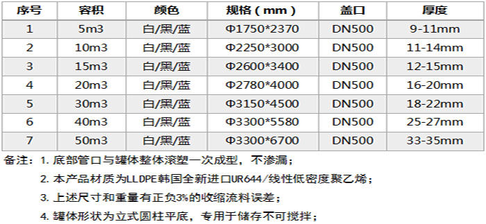 特點:所用材質(zhì)為韓國進(jìn)口聚乙烯(PE)滾塑原料,儲罐一次成型,內(nèi)外光滑,具有良好的衛(wèi)生性與抗紫外線能力,耐酸堿、耐腐蝕、易清洗、不易老化。它可以盛裝在常溫下無機酸、堿、鹽等大部分物質(zhì)及有機物,耐熱耐凍 耐熱耐凍性佳,-5℃—+85℃均可使用
