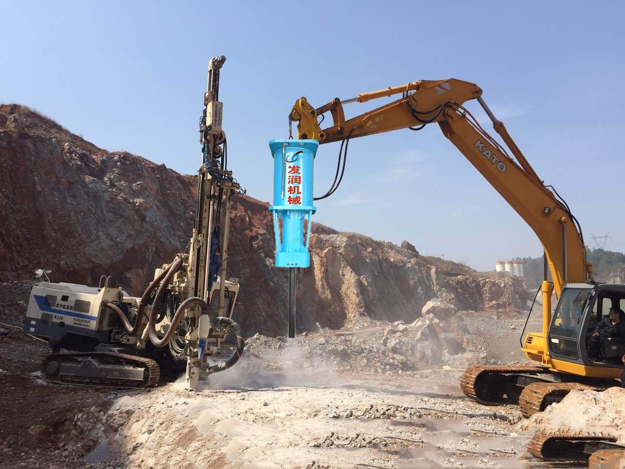 大型破碎巖石設(shè)備替代了爆破和傳統(tǒng)的破碎方法。它在破碎巖石和混凝土?xí)r不會(huì)產(chǎn)生壓力波,也沒有振動(dòng)、噪音和粉塵,在采石場(chǎng)的荒料開采也擁有很大的技術(shù)優(yōu)勢(shì)。