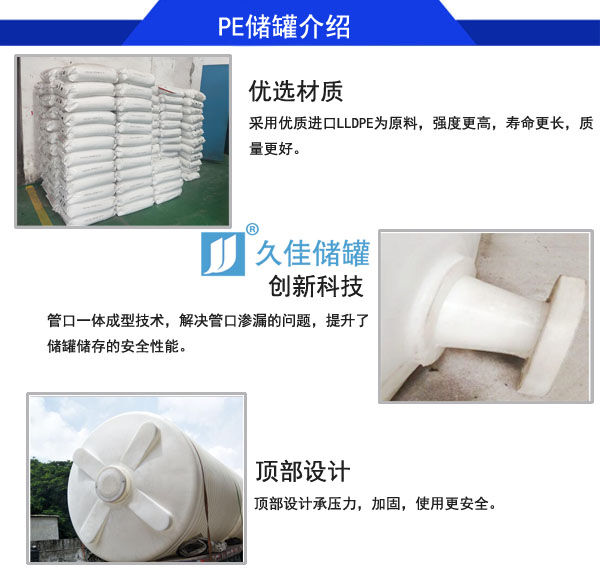 東莞久佳PE材質(zhì)減水劑儲(chǔ)罐特點(diǎn):滾塑一次成型的減水劑儲(chǔ)罐采用進(jìn)口LLDPE原料生產(chǎn)的PE減水劑儲(chǔ)罐是一種耐酸堿防腐蝕大型塑膠容器,可用于儲(chǔ)存各種聚羧酸母液、減水劑、混凝土外加劑、水泥添加劑;目前已經(jīng)廣泛用于聚羧酸減水劑生產(chǎn)合成/外加劑復(fù)配;聚羧酸減水劑合成工藝配置的純水罐、去離子水水罐、原水罐、母液罐、儲(chǔ)料罐、雙氧水儲(chǔ)罐、液堿罐、原料罐、計(jì)量罐、滴加罐、配料罐、復(fù)配罐、成品儲(chǔ)罐都可以采用這種PE材質(zhì)塑料儲(chǔ)罐。