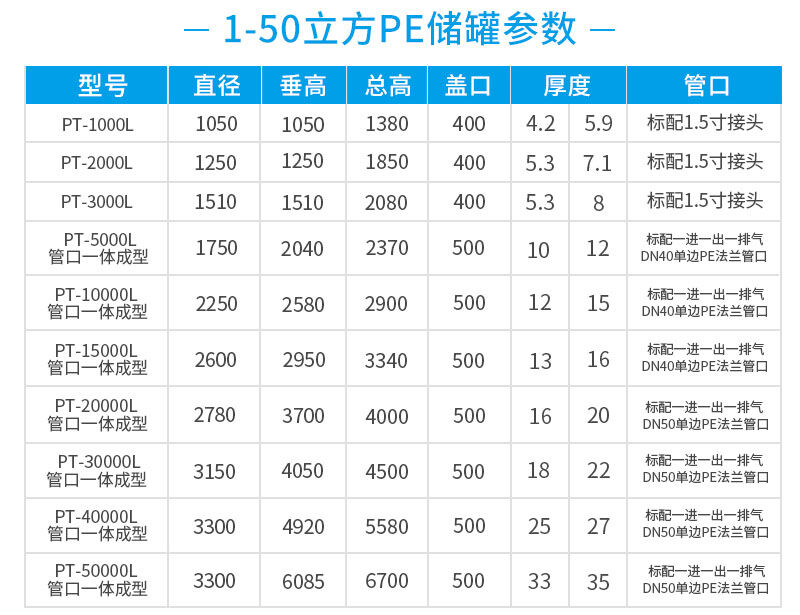 規(guī)格:1噸塑料儲罐,2噸塑料儲罐,3噸塑料儲罐、5噸塑料儲罐、10噸塑料儲罐、15噸塑料儲罐、20噸塑料儲罐、30噸塑料儲罐、40噸塑料儲罐、50噸塑料儲罐