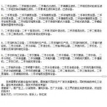 主要包括二手離心機,臥螺離心機,二手碟式離心機,二手臥式螺旋沉降離心機,二手反應釜,二手不銹鋼反應釜,二手搪瓷反應釜,二手搪玻璃反應釜,二手壓濾機,二手板框壓濾機,二手箱式壓濾機,二手過濾機,二手干燥機,二手管束干燥機,二手流化床干燥機,氣流干燥機,管束干燥機,滾筒干燥機,二手閃蒸干燥機,二氣流噴霧干燥機,壓力噴霧干燥機,離心噴霧干燥機,并流噴霧干燥機,冷凍干燥機,真空干燥機,雙錐回轉(zhuǎn)真空干燥機,二手蒸餾塔,二手酒精塔,二手振動篩,流化床振動篩,蒸餾釜,二手貯罐,不銹鋼儲罐,玻璃鋼儲罐,臥式儲罐,防腐儲罐,液氨儲罐,二手蒸發(fā)器,薄膜蒸發(fā)器,雙效蒸發(fā)器,三效蒸發(fā)器,二手高頻振動篩,二手振動篩,二手導熱油爐,二手蒸汽鍋爐,二手米糠油機械,二手胚芽油機械,二手榨骨機設備,二手蒸脫機,二手蒸炒鍋,二手軟化滾筒、軋胚機、烘干機、剝殼機、振動流化床干燥機、圓篩、振動篩、平篩、膨化機及進口膨化機、板框過濾機、振動排渣葉片過濾機、冬化過濾機、離心機、阿法拉發(fā)碟式分離機、脫皂機、冷凝器、換熱器、水化罐、精煉罐、脫臭罐、脫色罐、立絞籠、平絞籠、提升機等,進出口色拉油設備、生化油設備、氫化油設備、生物柴油設備、設備及各種零配件等。
