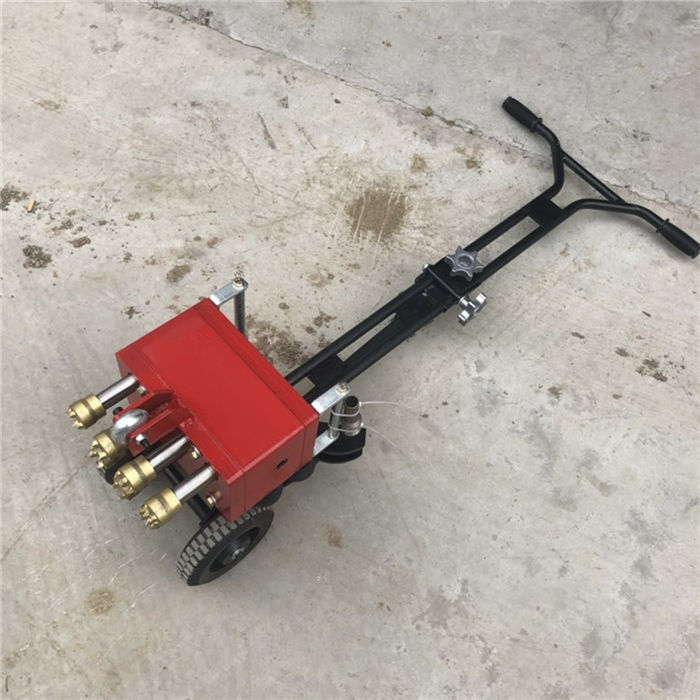 氣動(dòng)型鑿毛機(jī)是通過空壓機(jī)帶動(dòng)的鑿毛頭砸地面,砸出毛,然后上面鋪上一層瀝青,是瀝青和混凝土更切合不容易分離脫落。手推式鑿毛機(jī)工作也很省人力,人推著往前走就可以了。