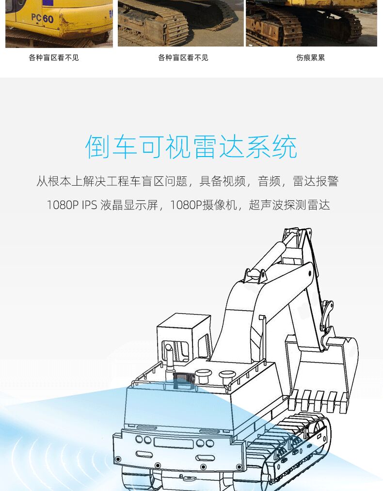 本產(chǎn)品是針對(duì)大型機(jī)械和卡車貨車倒車視野不好的環(huán)境設(shè)計(jì)和制作的倒車?yán)走_(dá)。通過(guò)攝像頭將車后環(huán)境通過(guò)視屏直接顯示到顯示屏上,讓駕駛員直觀了解車后環(huán)境;另外,超聲波探頭精確探測(cè)車后障礙物距離,并且在顯示屏顯示障礙物距離并發(fā)出其它警示信號(hào)。從而使駕駛者在探測(cè)范圍內(nèi)能方便地判斷車后障礙物的距離、方位和所在區(qū)域,得到及時(shí)警示,達(dá)到安全倒車的目的。此款產(chǎn)品具有防水、防震、防干擾,探測(cè)距離遠(yuǎn)等優(yōu)點(diǎn)。