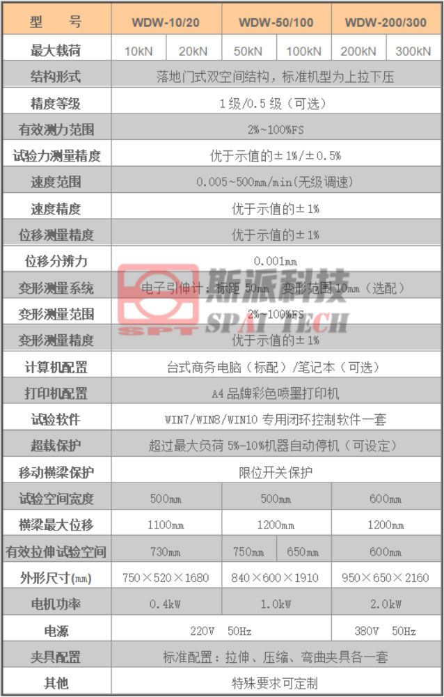 WDW系列大門式微機(jī)控制電子萬能材料試驗(yàn)機(jī)采用穩(wěn)定的門式主機(jī)結(jié)構(gòu),選用日本松下(Panasonic)伺服調(diào)速系統(tǒng)、精密設(shè)計(jì)同步減速系統(tǒng)、臺(tái)灣上銀(HIWIN)/銀泰(PMI)滾珠絲杠、美國(guó)傳力(Trancell)/世銓(Celtron)力傳感器等主要部件,主要應(yīng)用于金屬、非金屬材料及制品的拉伸、壓縮、彎曲等力學(xué)性能試驗(yàn),具有結(jié)構(gòu)簡(jiǎn)單、穩(wěn)定可靠、外形美觀等特點(diǎn),深受廣大用戶的歡迎。