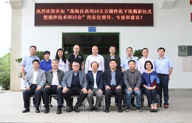 2018年4月18日,珠海仕高瑪公司10立方攪拌機(jī)下線揭彩儀式暨攪拌技術(shù)研討會(huì)在珠海仕高瑪公司舉行,中國工程機(jī)械協(xié)會(huì)混凝土機(jī)械分會(huì)符忠軒會(huì)長、長安大學(xué)馮忠緒教授、趙利軍博士、廣東長大公路工程公司楊東來總工程師、河南萬里路橋李冠峰總工程師、許昌德通特種混凝土公司孟超總經(jīng)理等領(lǐng)導(dǎo)、專家和嘉賓應(yīng)邀出席儀式和研討會(huì),珠海仕高瑪公司股東黃志輝先生、意大利SICOMA公司董事長Mr. Galletti、總工程師Marco、珠海仕高瑪公司總經(jīng)理郗俊峰先生、財(cái)務(wù)總監(jiān)唐志敏女士及公司技術(shù)研發(fā)團(tuán)隊(duì)、生產(chǎn)團(tuán)隊(duì)、銷售團(tuán)隊(duì)、售后團(tuán)隊(duì)參加本次活動(dòng)。