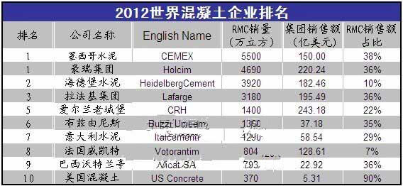 2012世界混凝土企業(yè)排名