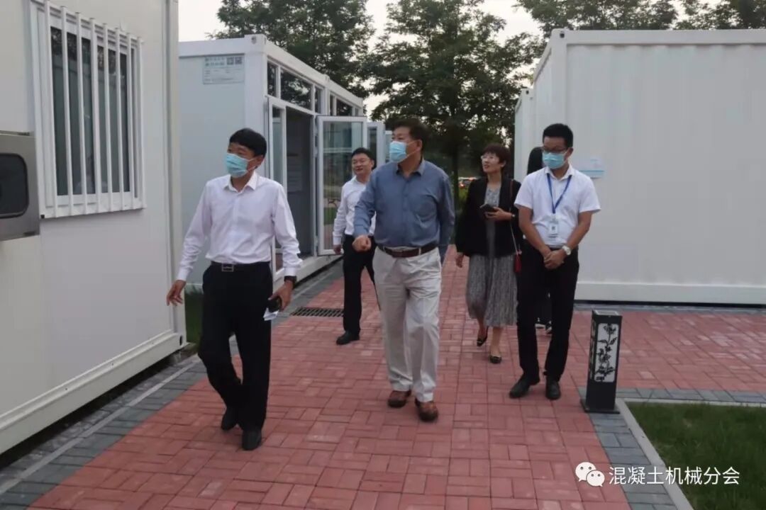 會(huì)議室交流結(jié)束之后,申總陪同符會(huì)長(zhǎng)一行參觀了公司的集成房屋和攪拌站、PC設(shè)備的生產(chǎn)現(xiàn)場(chǎng),最后在公司樓前合影留念。