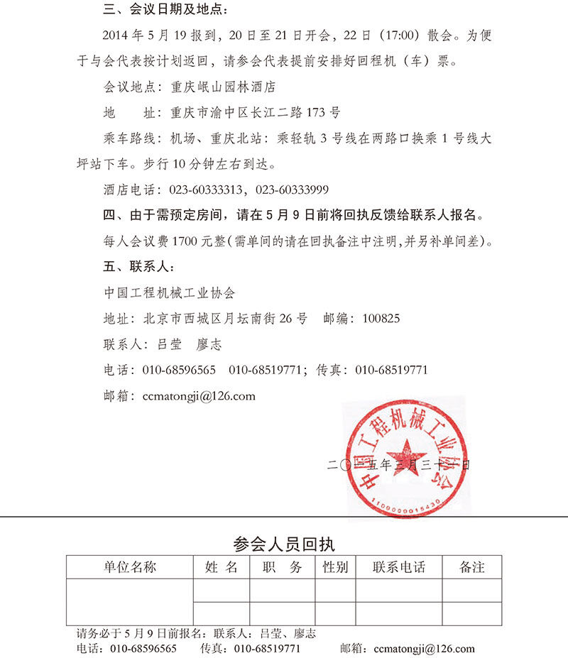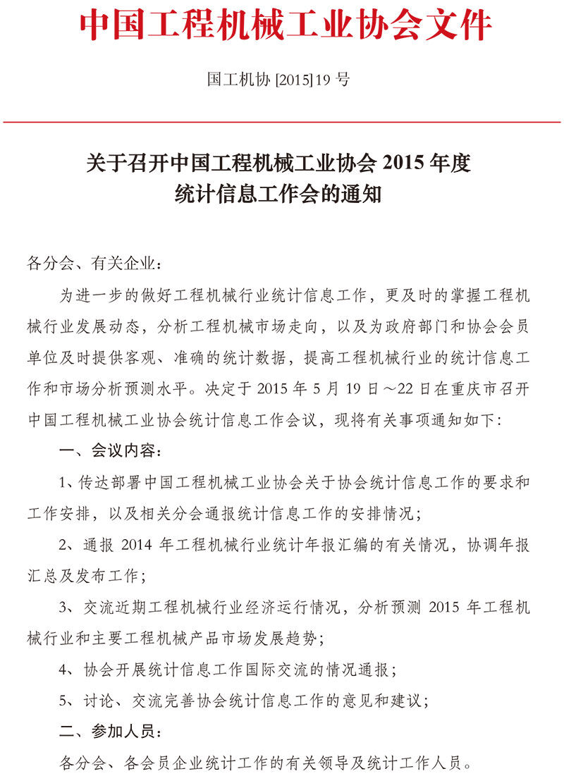 關(guān)于召開中國工程機(jī)械工業(yè)協(xié)會(huì)2015年度統(tǒng)計(jì)信息工作會(huì)的通知